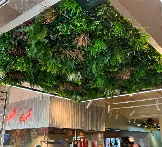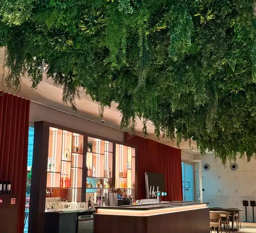 Voor Orchid House realiseerden wij een jungle haag in het plafond met een formaat van 1200 x 250. Deze bijzondere toepassing transformeert de ruimte direct tot een groene beleving die verrast en inspireert. Door het groen bovenin de ruimte te integreren ontstaat een unieke dynamiek en een warme, stijlvolle uitstraling die perfect past binnen hospitality en high end interieurconcepten.