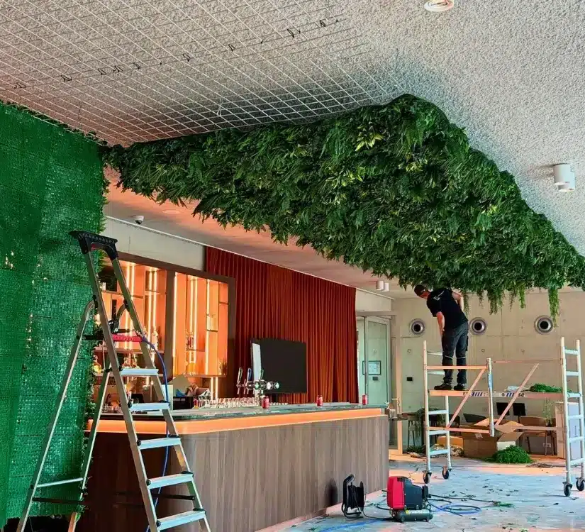 Resultaat: Een groen plafond dat de hele ruimte tot leven brengt.